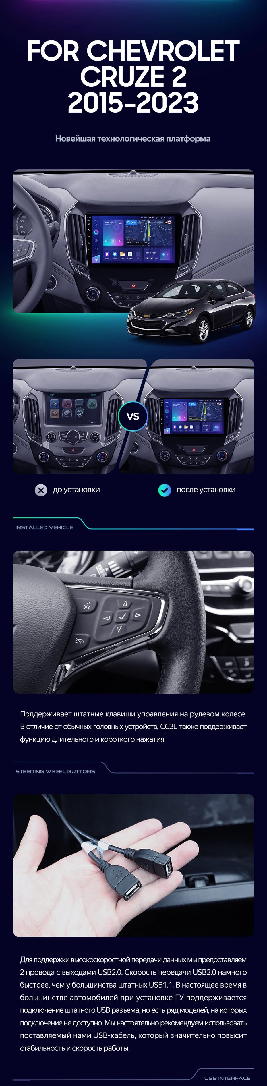 Переходная рамка Chevrolet Cruze 2 (2015-2023) (9") - купить всего за 4 200 руб. в интернет-магазине в Подольске Teyes.com.ru. ✓ Самый лучший выбор мультимедиа ✓ Лучшая замена штатному ГУ ✓ Тел. +7 (800) 775-31-74