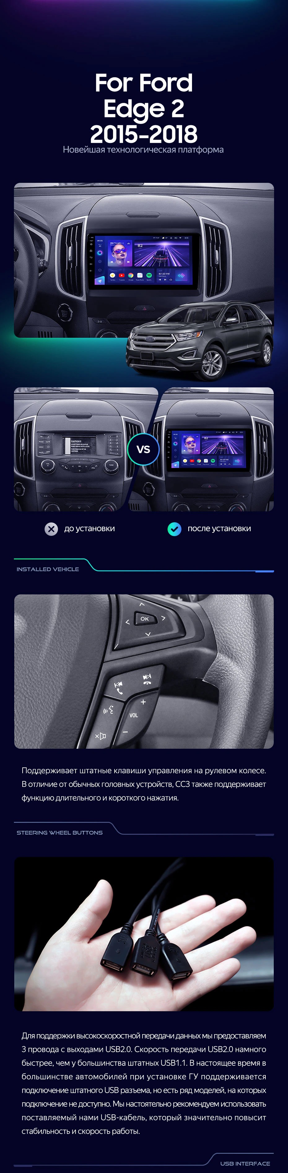 Штатная магнитола Teyes CC3 4/32 Ford Edge 2 (2015-2018) F1 - купить всего за 32 830 руб. в интернет-магазине в Подольске Teyes.com.ru. ✓ Самый лучший выбор мультимедиа ✓ Лучшая замена штатному ГУ ✓ Тел. +7 (800) 775-31-74