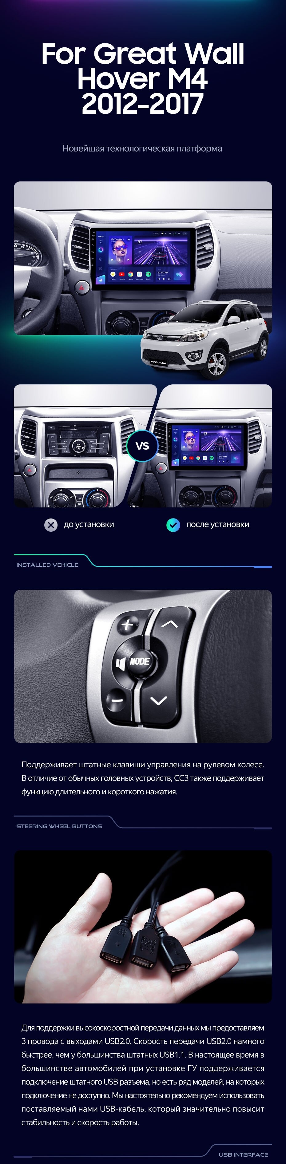 Штатная магнитола Teyes CC3 4/32 Great Wall Hover M4 (2012-2017) - купить всего за 32 800 руб. в интернет-магазине в Подольске Teyes.com.ru. ✓ Самый лучший выбор мультимедиа ✓ Лучшая замена штатному ГУ ✓ Тел. +7 (800) 775-31-74