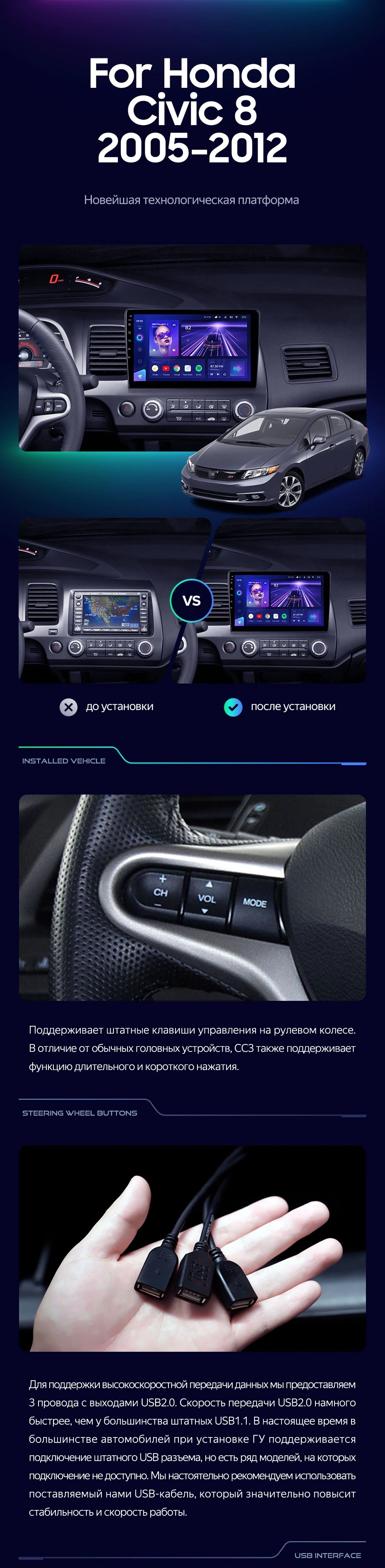 Штатная магнитола Teyes CC3 4/32 Honda Civic Hatchback (2006-2012) - купить всего за 35 970 руб. в интернет-магазине в Подольске Teyes.com.ru. ✓ Самый лучший выбор мультимедиа ✓ Лучшая замена штатному ГУ ✓ Тел. +7 (800) 775-31-74
