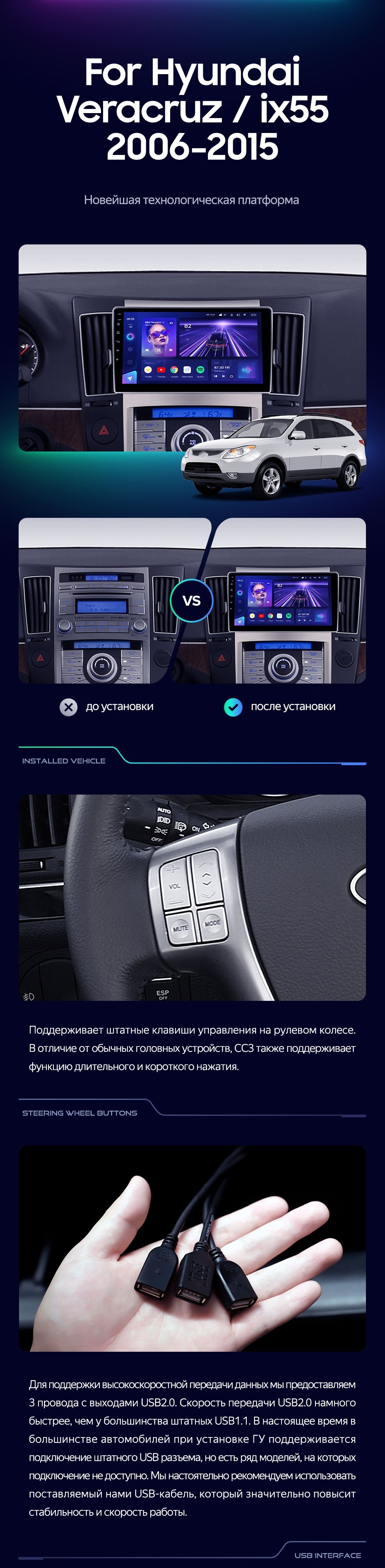 Штатная магнитола Teyes CC3 4/32 Hyundai ix55 (2006-2015) - купить всего за 34 730 руб. в интернет-магазине в Подольске Teyes.com.ru. ✓ Самый лучший выбор мультимедиа ✓ Лучшая замена штатному ГУ ✓ Тел. +7 (800) 775-31-74