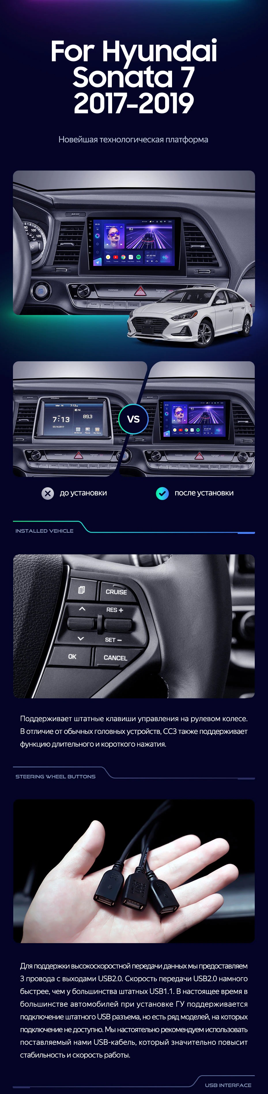Штатная магнитола Teyes CC3 4/32 Hyundai Sonata 7 LF (2017-2019) - купить всего за 33 650 руб. в интернет-магазине в Подольске Teyes.com.ru. ✓ Самый лучший выбор мультимедиа ✓ Лучшая замена штатному ГУ ✓ Тел. +7 (800) 775-31-74