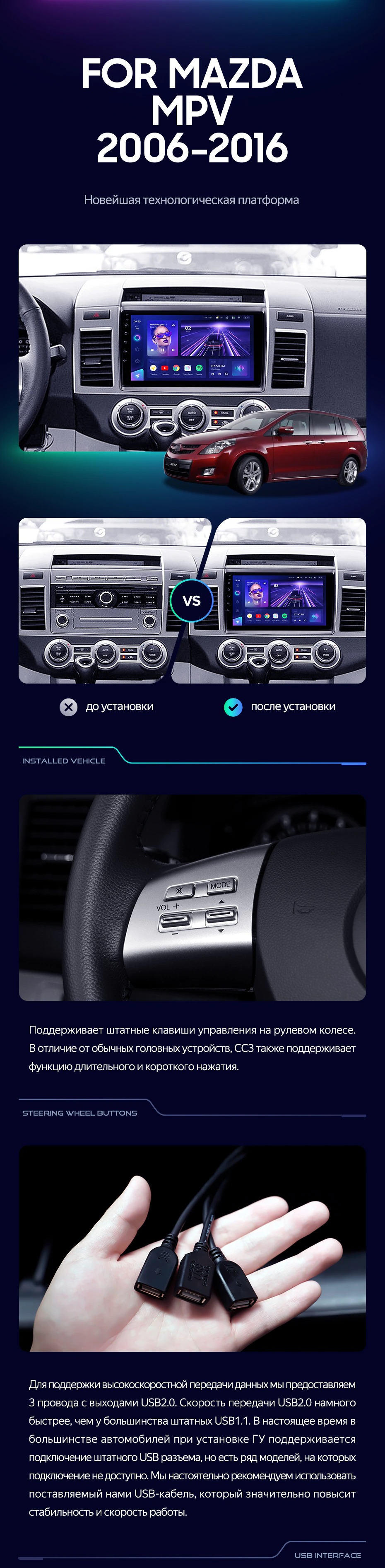 Штатная магнитола Teyes CC3 4/32 Mazda MPV LY (2006-2016) - купить всего за 34 230 руб. в интернет-магазине в Подольске Teyes.com.ru. ✓ Самый лучший выбор мультимедиа ✓ Лучшая замена штатному ГУ ✓ Тел. +7 (800) 775-31-74