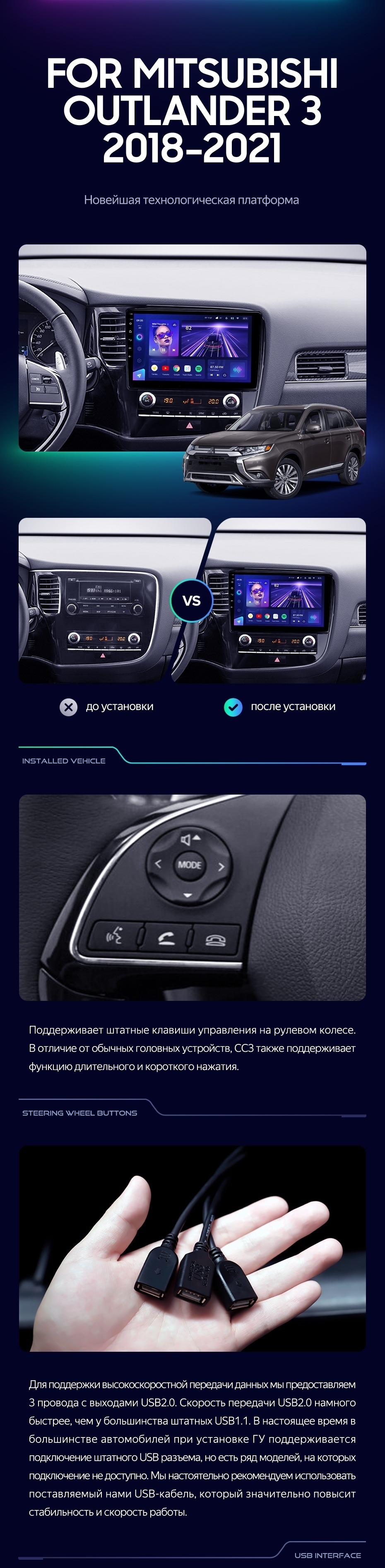 Штатная магнитола Teyes CC3 4/32 Mitsubishi Outlander 3 (2018-2021) - купить всего за 33 830 руб. в интернет-магазине в Подольске Teyes.com.ru. ✓ Самый лучший выбор мультимедиа ✓ Лучшая замена штатному ГУ ✓ Тел. +7 (800) 775-31-74