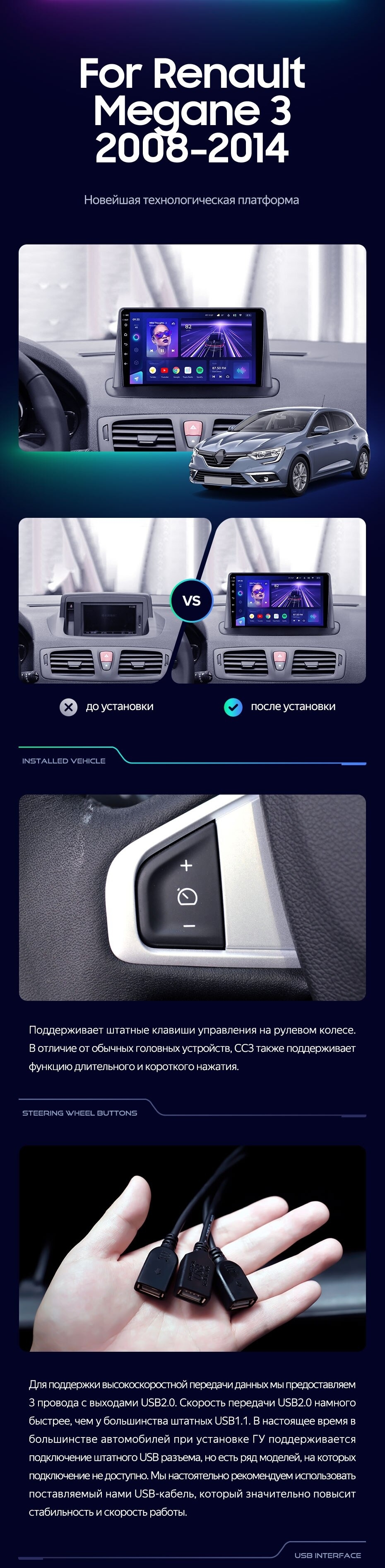 Штатная магнитола Teyes CC3 4/32 Renault Megane 3 (2008-2014) - купить всего за 34 030 руб. в интернет-магазине в Подольске Teyes.com.ru. ✓ Самый лучший выбор мультимедиа ✓ Лучшая замена штатному ГУ ✓ Тел. +7 (800) 775-31-74