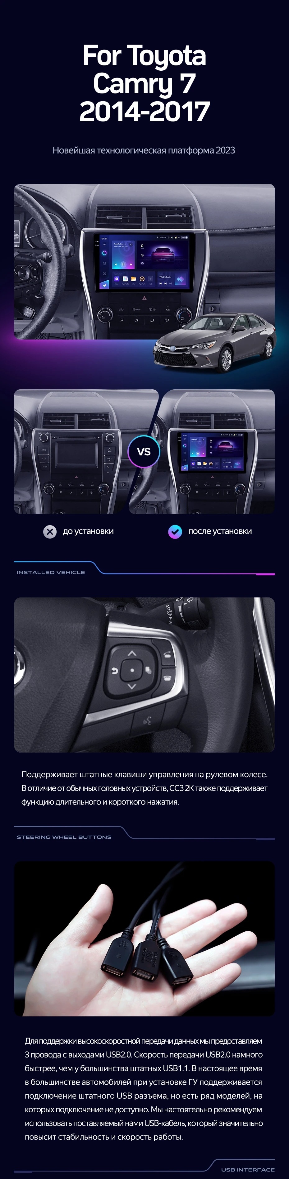 Штатная магнитола Teyes CC3 4/32 Toyota Camry 7 XV 50 55 (2014-2017) (North America) F5 - купить всего за 32 850 руб. в интернет-магазине в Подольске Teyes.com.ru. ✓ Самый лучший выбор мультимедиа ✓ Лучшая замена штатному ГУ ✓ Тел. +7 (800) 775-31-74