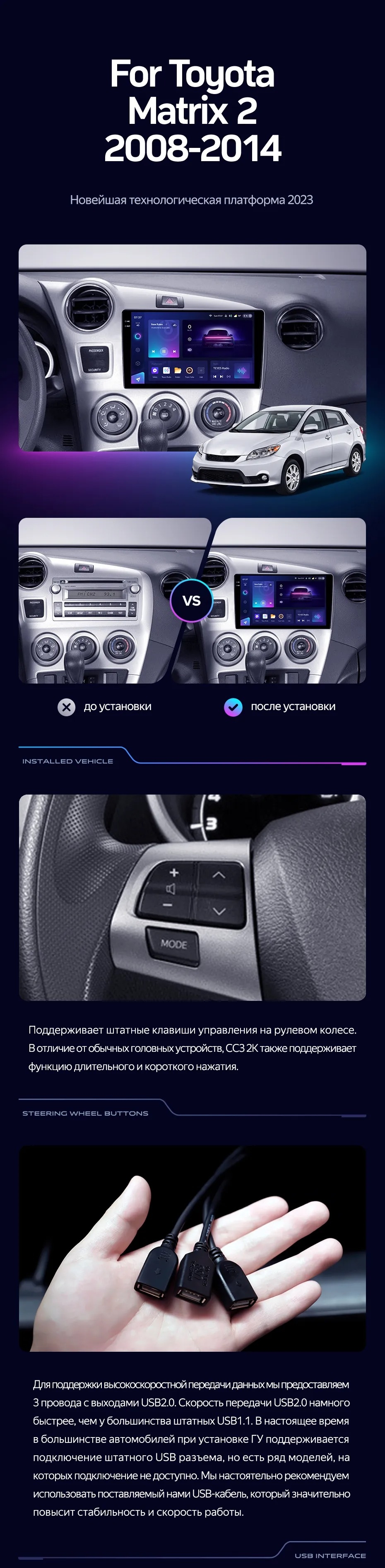Штатная магнитола Teyes CC3 4/32 Toyota Matrix 2 E140 (2008-2014) - купить всего за 34 230 руб. в интернет-магазине в Подольске Teyes.com.ru. ✓ Самый лучший выбор мультимедиа ✓ Лучшая замена штатному ГУ ✓ Тел. +7 (800) 775-31-74