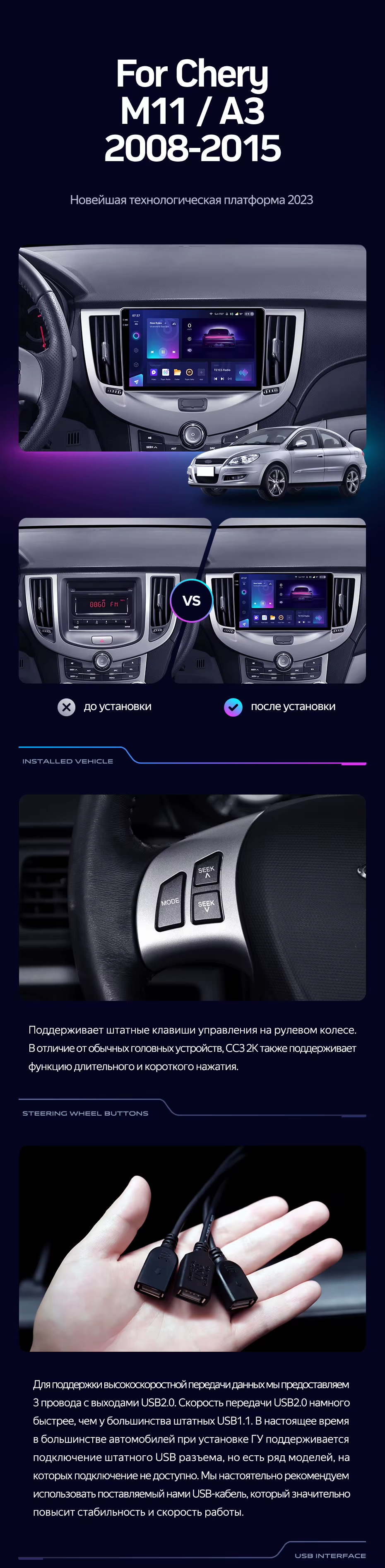 Штатная магнитола Teyes CC3 4/32 Chery M11 A3 (2008-2015) - купить всего за 32 280 руб. в интернет-магазине в Подольске Teyes.com.ru. ✓ Самый лучший выбор мультимедиа ✓ Лучшая замена штатному ГУ ✓ Тел. +7 (800) 775-31-74