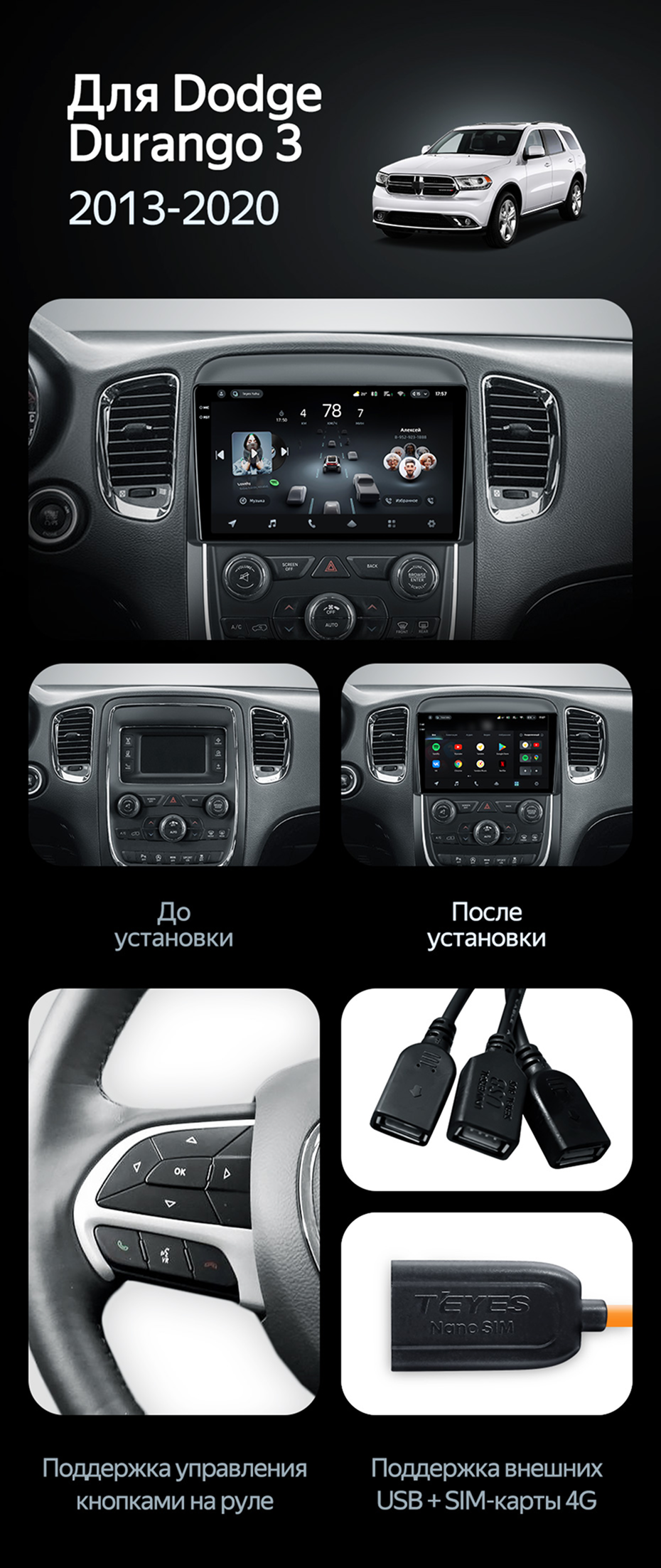 Штатная магнитола Teyes CC3 4/32 Dodge Durango 3 (2013-2020) - купить всего за 35 130 руб. в интернет-магазине в Подольске Teyes.com.ru. ✓ Самый лучший выбор мультимедиа ✓ Лучшая замена штатному ГУ ✓ Тел. +7 (800) 775-31-74