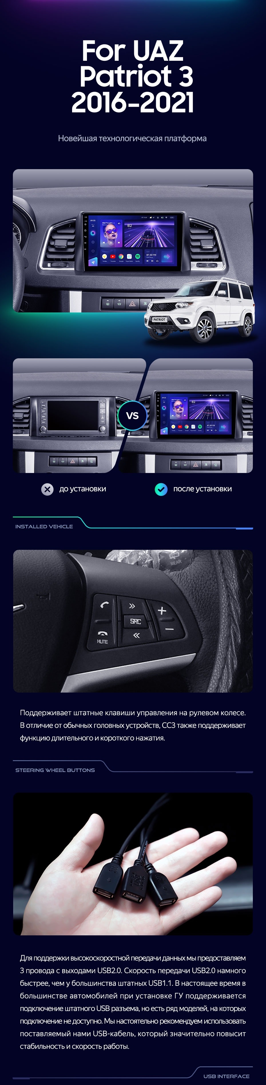 Штатная магнитола Teyes CC3 6/128 UAZ Patriot 3 (2016-2021) F1 - купить всего за 45 400 руб. в интернет-магазине в Подольске Teyes.com.ru. ✓ Самый лучший выбор мультимедиа ✓ Лучшая замена штатному ГУ ✓ Тел. +7 (800) 775-31-74