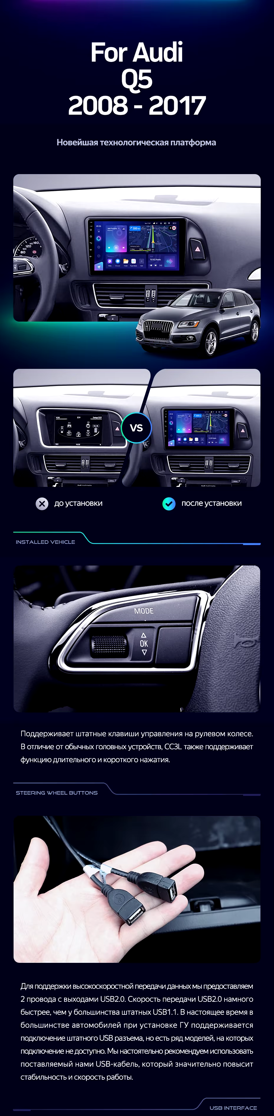 Штатная магнитола Teyes CC3L 4/32 Audi Q5 8R (2008-2017) Тип-B - купить всего за 33 270 руб. в интернет-магазине в Подольске Teyes.com.ru. ✓ Самый лучший выбор мультимедиа ✓ Лучшая замена штатному ГУ ✓ Тел. +7 (800) 775-31-74