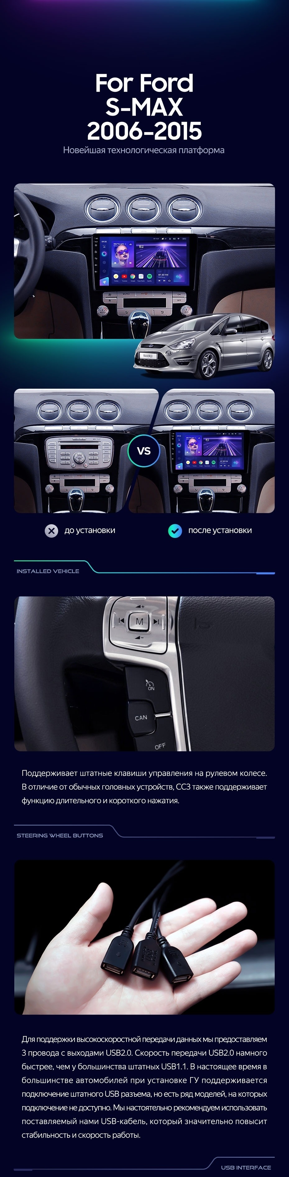 Штатная магнитола Teyes CC3L 4/32 Ford S-MAX (2006-2015) F2 - купить всего за 29 200 руб. в интернет-магазине в Подольске Teyes.com.ru. ✓ Самый лучший выбор мультимедиа ✓ Лучшая замена штатному ГУ ✓ Тел. +7 (800) 775-31-74