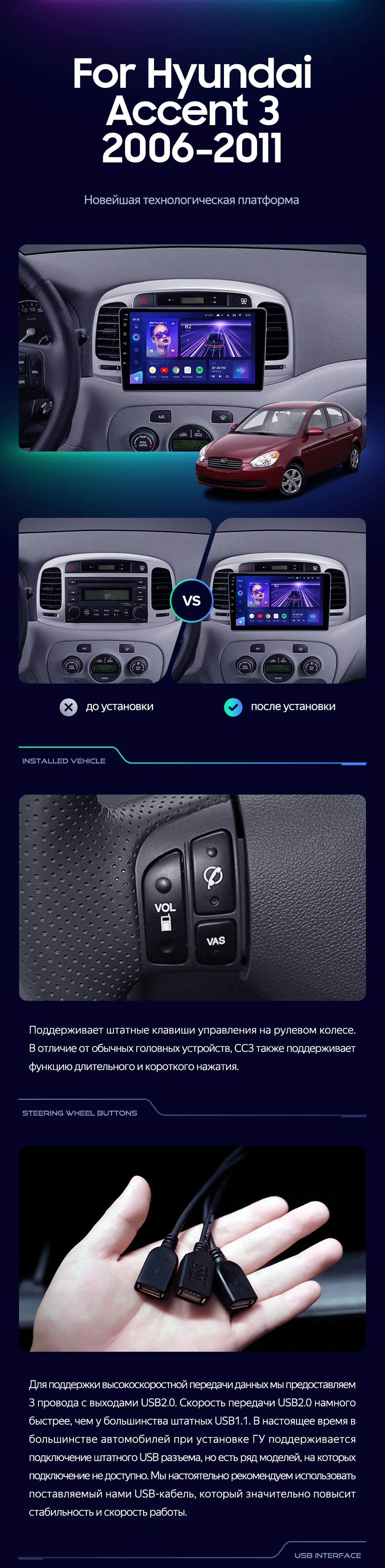 Штатная магнитола Teyes CC3L 4/32 Hyundai Accent 3 (2006-2011) - купить всего за 28 600 руб. в интернет-магазине в Подольске Teyes.com.ru. ✓ Самый лучший выбор мультимедиа ✓ Лучшая замена штатному ГУ ✓ Тел. +7 (800) 775-31-74