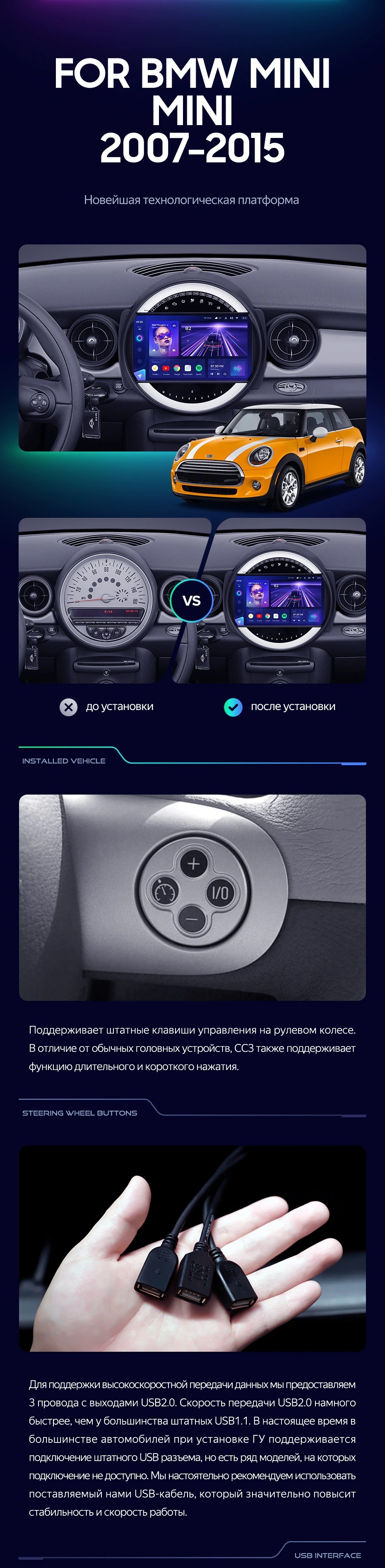 Штатная магнитола Teyes CC3L 4/32 Mini Cooper (2007-2015) F1 - купить всего за 35 800 руб. в интернет-магазине в Подольске Teyes.com.ru. ✓ Самый лучший выбор мультимедиа ✓ Лучшая замена штатному ГУ ✓ Тел. +7 (800) 775-31-74