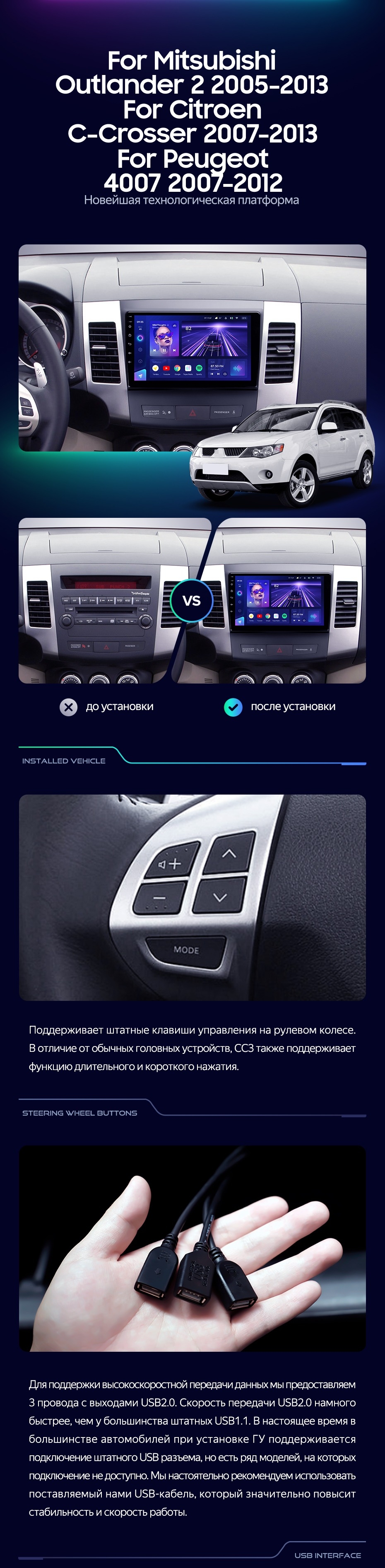 Штатная магнитола Teyes CC3L 4/32 Mitsubishi Outlander 2 (2005-2011) Тип-B - купить всего за 28 600 руб. в интернет-магазине в Подольске Teyes.com.ru. ✓ Самый лучший выбор мультимедиа ✓ Лучшая замена штатному ГУ ✓ Тел. +7 (800) 775-31-74