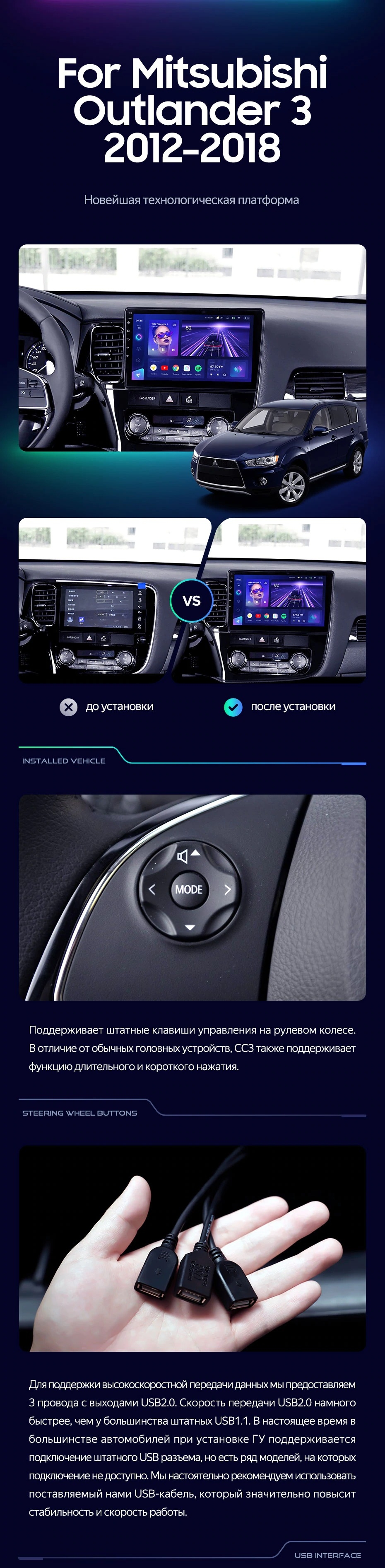 Штатная магнитола Teyes CC3L 4/32 Mitsubishi Outlander 3 (2012-2018) Тип-B - купить всего за 29 250 руб. в интернет-магазине в Подольске Teyes.com.ru. ✓ Самый лучший выбор мультимедиа ✓ Лучшая замена штатному ГУ ✓ Тел. +7 (800) 775-31-74