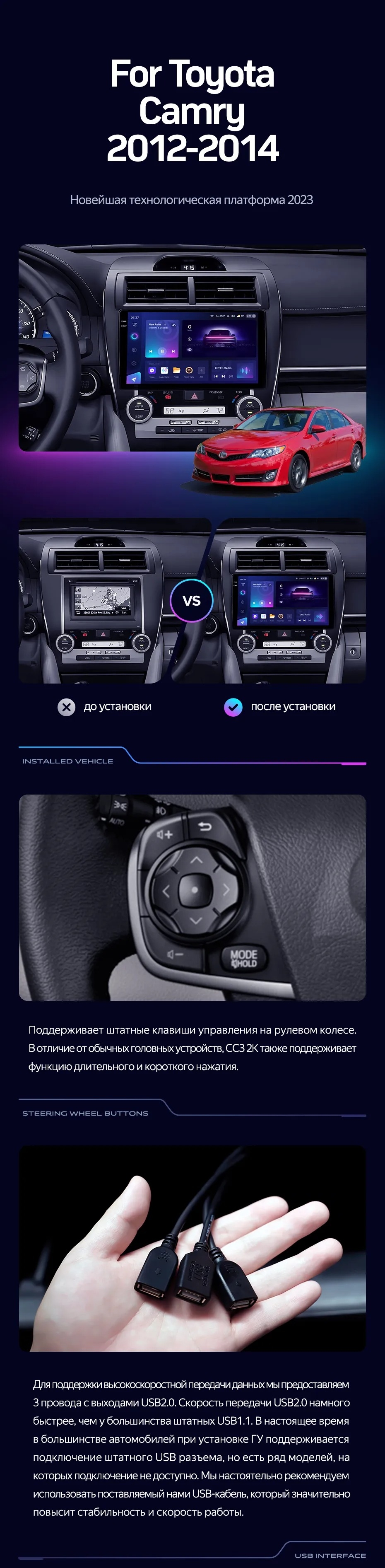 Штатная магнитола Teyes CC3L WiFi 2/32 Toyota Camry 7 XV 50 55 (2012-2014) Америка - купить всего за 17 100 руб. в интернет-магазине в Подольске Teyes.com.ru. ✓ Самый лучший выбор мультимедиа ✓ Лучшая замена штатному ГУ ✓ Тел. +7 (800) 775-31-74