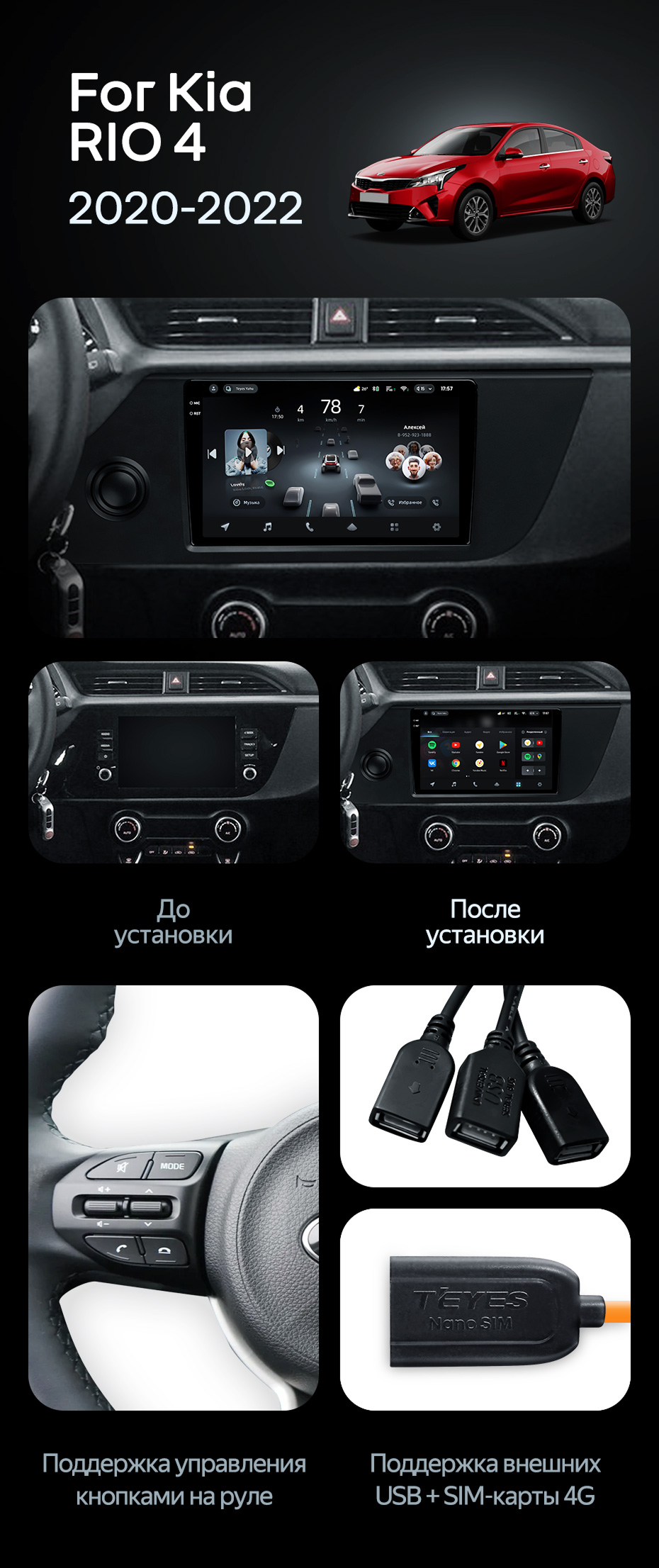 Штатная магнитола Teyes CC4 6/64 Kia Rio 4 IV FB (2020-2022) - купить всего за 43 940 руб. в интернет-магазине в Подольске Teyes.com.ru. ✓ Самый лучший выбор мультимедиа ✓ Лучшая замена штатному ГУ ✓ Тел. +7 (800) 775-31-74