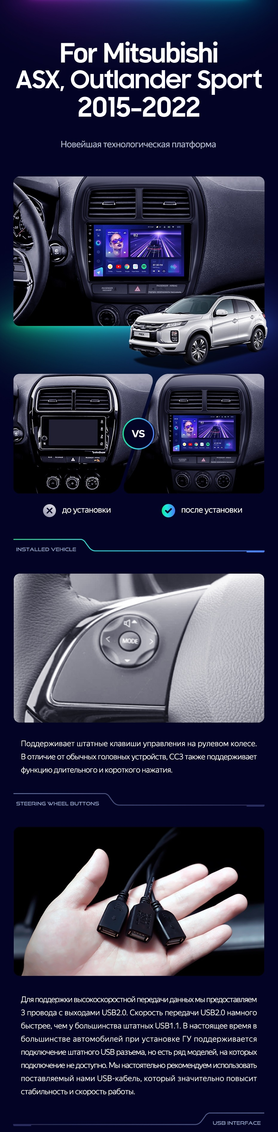 Штатная магнитола Teyes CC4 6/64 Mitsubishi ASX (2016-2026) Тип-B - купить всего за 44 400 руб. в интернет-магазине в Подольске Teyes.com.ru. ✓ Самый лучший выбор мультимедиа ✓ Лучшая замена штатному ГУ ✓ Тел. +7 (800) 775-31-74