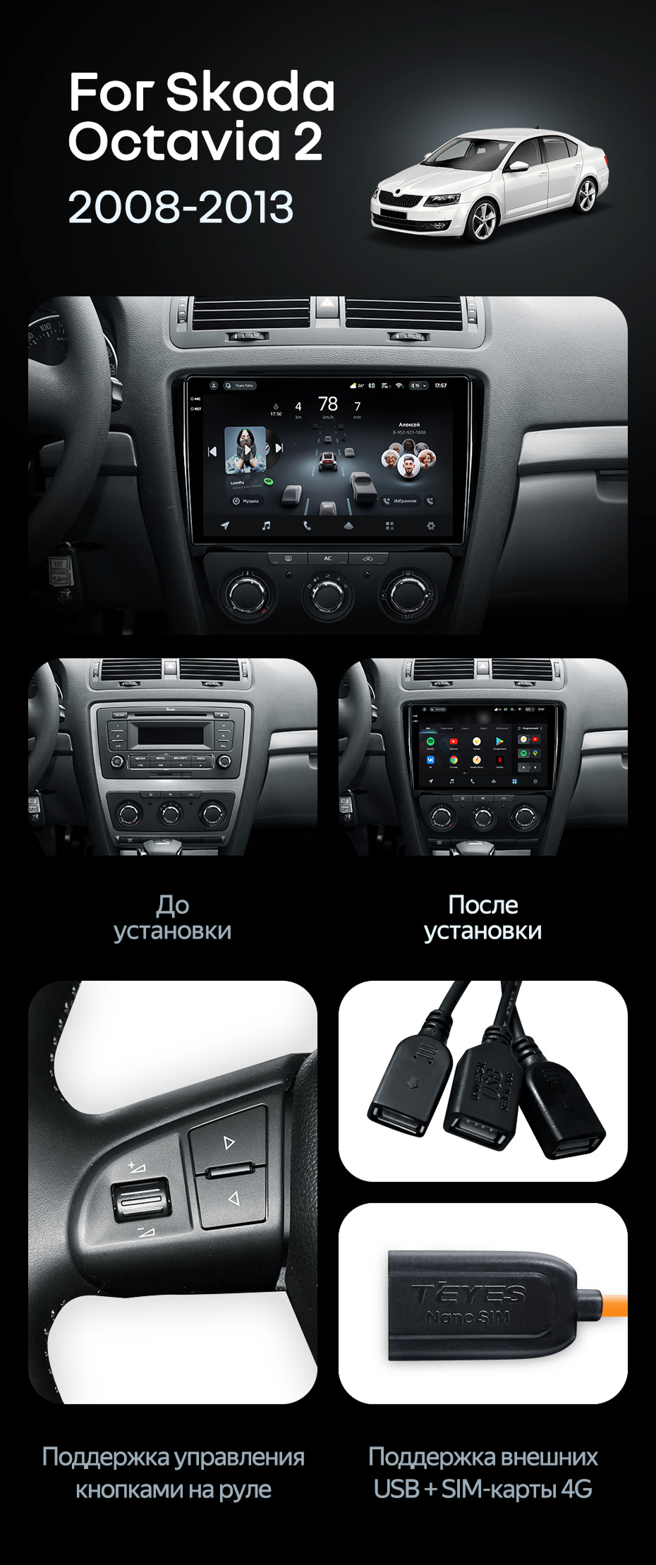 Штатная магнитола Teyes CC4 6/64 Skoda Octavia 2 A5 (2008-2013) - купить всего за 48 070 руб. в интернет-магазине в Подольске Teyes.com.ru. ✓ Самый лучший выбор мультимедиа ✓ Лучшая замена штатному ГУ ✓ Тел. +7 (800) 775-31-74