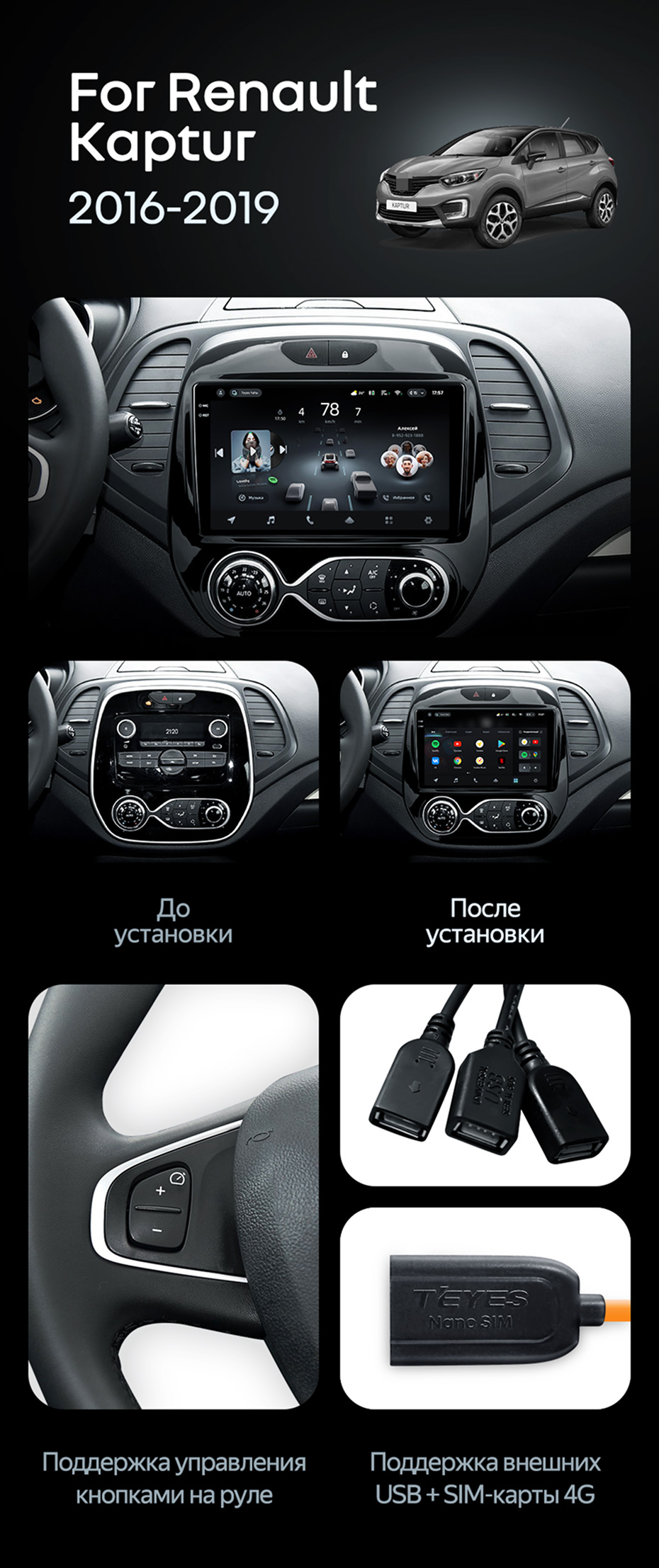 Штатная магнитола Teyes CC4 8/128 Renault Kaptur (2016-2019) F2 - купить всего за 48 620 руб. в интернет-магазине в Подольске Teyes.com.ru. ✓ Самый лучший выбор мультимедиа ✓ Лучшая замена штатному ГУ ✓ Тел. +7 (800) 775-31-74