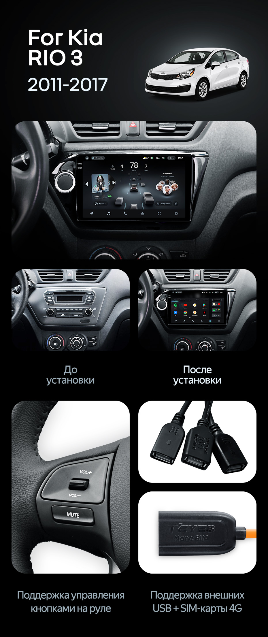 Штатная магнитола Teyes CC4 Pro 12/256 Kia Rio 3 (2011-2017) - купить всего за 68 800 руб. в интернет-магазине в Подольске Teyes.com.ru. ✓ Самый лучший выбор мультимедиа ✓ Лучшая замена штатному ГУ ✓ Тел. +7 (800) 775-31-74