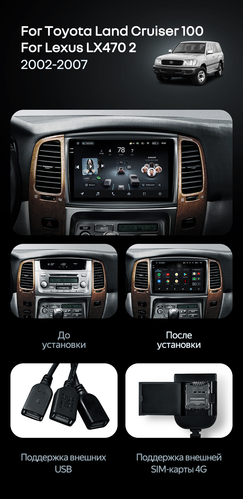 Штатная магнитола Teyes CC4 Pro 12/256 Lexus LX470 J100 2 (2002-2007) Тип-C - купить всего за 71 750 руб. в интернет-магазине в Подольске Teyes.com.ru. ✓ Самый лучший выбор мультимедиа ✓ Лучшая замена штатному ГУ ✓ Тел. +7 (800) 775-31-74