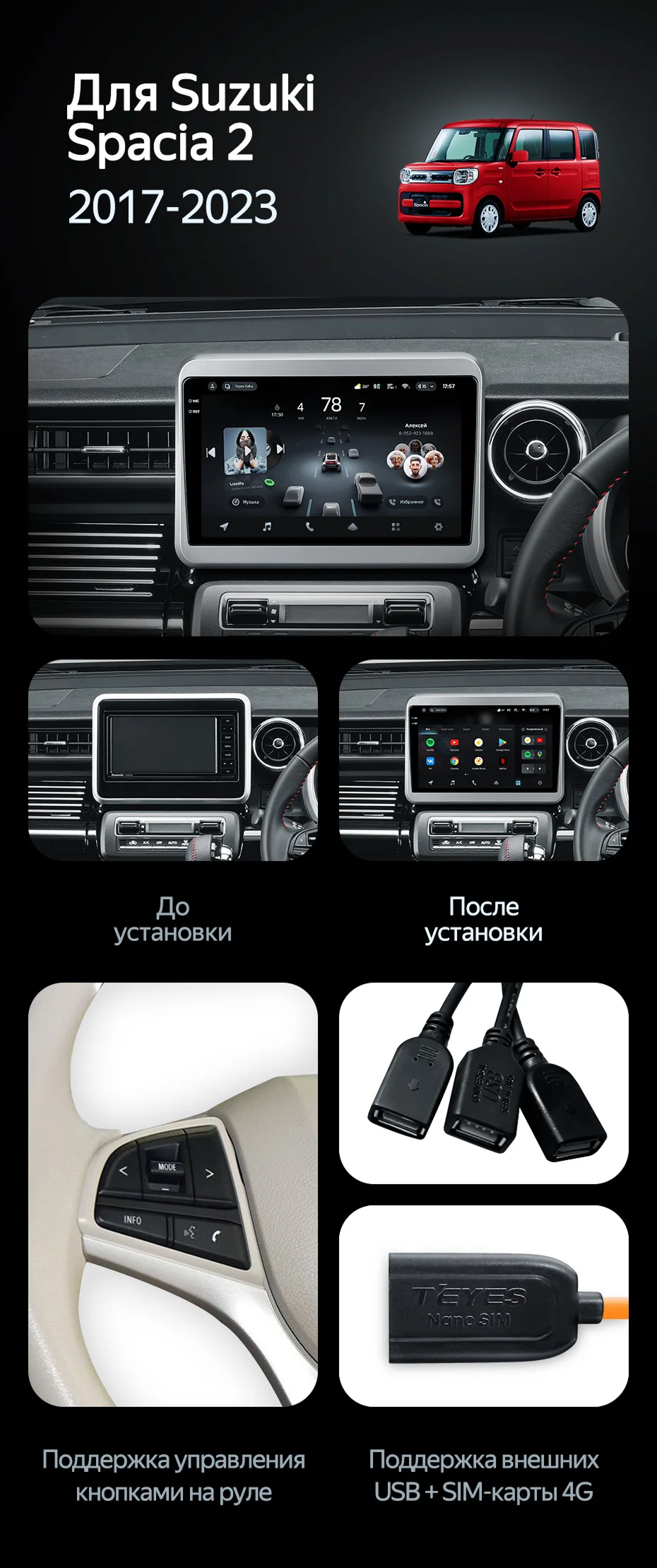 Штатная магнитола Teyes CC4 Pro 12/256 Suzuki Spacia 2 (2017-2023) - купить всего за 68 500 руб. в интернет-магазине в Подольске Teyes.com.ru. ✓ Самый лучший выбор мультимедиа ✓ Лучшая замена штатному ГУ ✓ Тел. +7 (800) 775-31-74