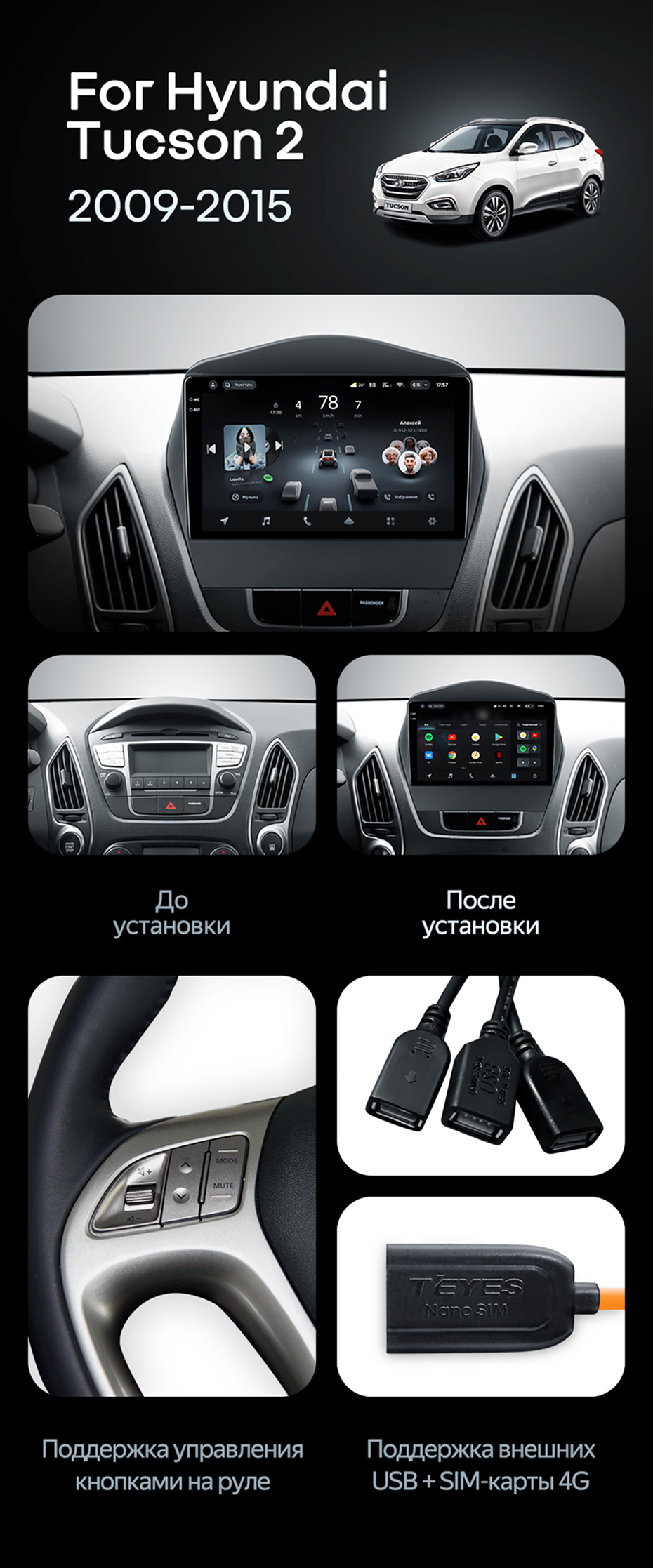 Штатная магнитола Teyes CC4 Pro 8/128 Hyundai ix35 (2009-2015) (Tucson 2) Тип-C - купить всего за 59 580 руб. в интернет-магазине в Подольске Teyes.com.ru. ✓ Самый лучший выбор мультимедиа ✓ Лучшая замена штатному ГУ ✓ Тел. +7 (800) 775-31-74
