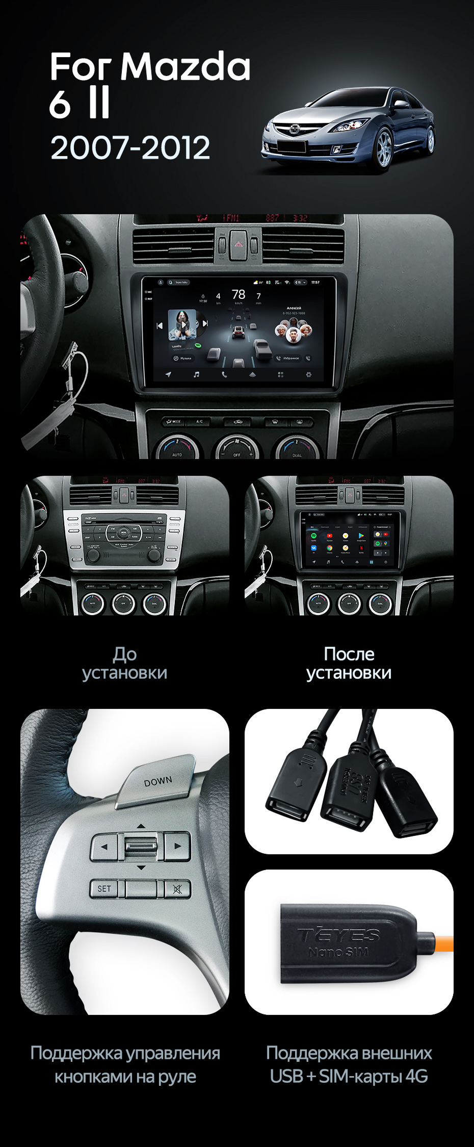 Штатная магнитола Teyes CC4 Pro 8/128 Mazda 6 2 GH (2007-2012) - купить всего за 58 380 руб. в интернет-магазине в Подольске Teyes.com.ru. ✓ Самый лучший выбор мультимедиа ✓ Лучшая замена штатному ГУ ✓ Тел. +7 (800) 775-31-74