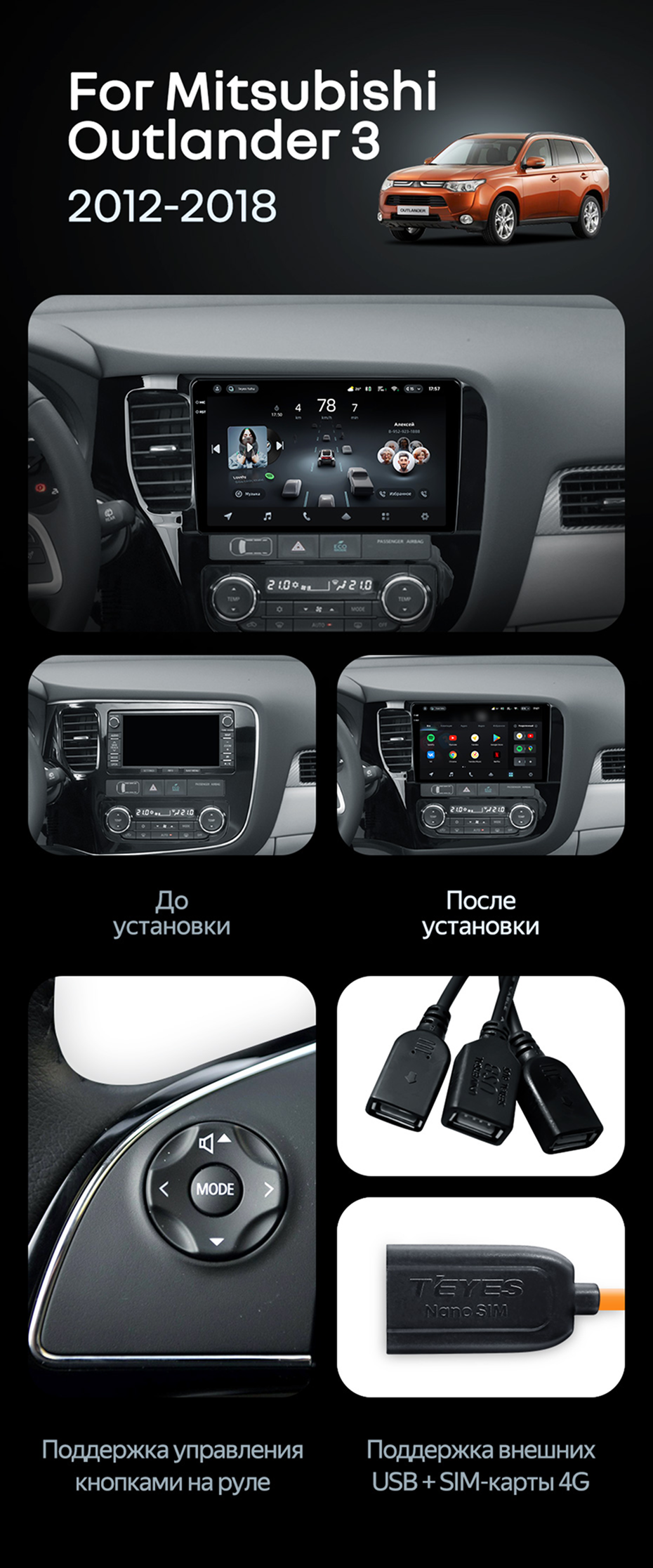Штатная магнитола Teyes CC4 Pro 8/128 Mitsubishi Outlander 3 (2012-2018) Тип-B - купить всего за 58 690 руб. в интернет-магазине в Подольске Teyes.com.ru. ✓ Самый лучший выбор мультимедиа ✓ Лучшая замена штатному ГУ ✓ Тел. +7 (800) 775-31-74