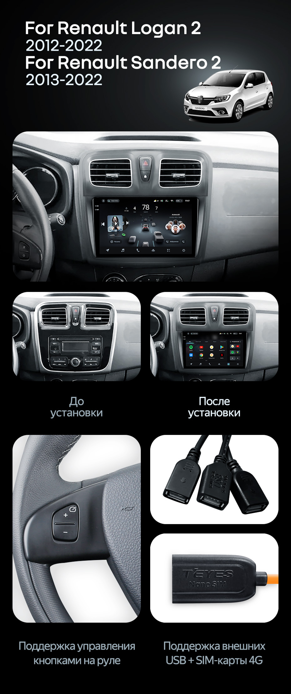 Штатная магнитола Teyes CC4 Pro 8/128 Renault Logan 2 (2012-2022) F2 - купить всего за 58 400 руб. в интернет-магазине в Подольске Teyes.com.ru. ✓ Самый лучший выбор мультимедиа ✓ Лучшая замена штатному ГУ ✓ Тел. +7 (800) 775-31-74