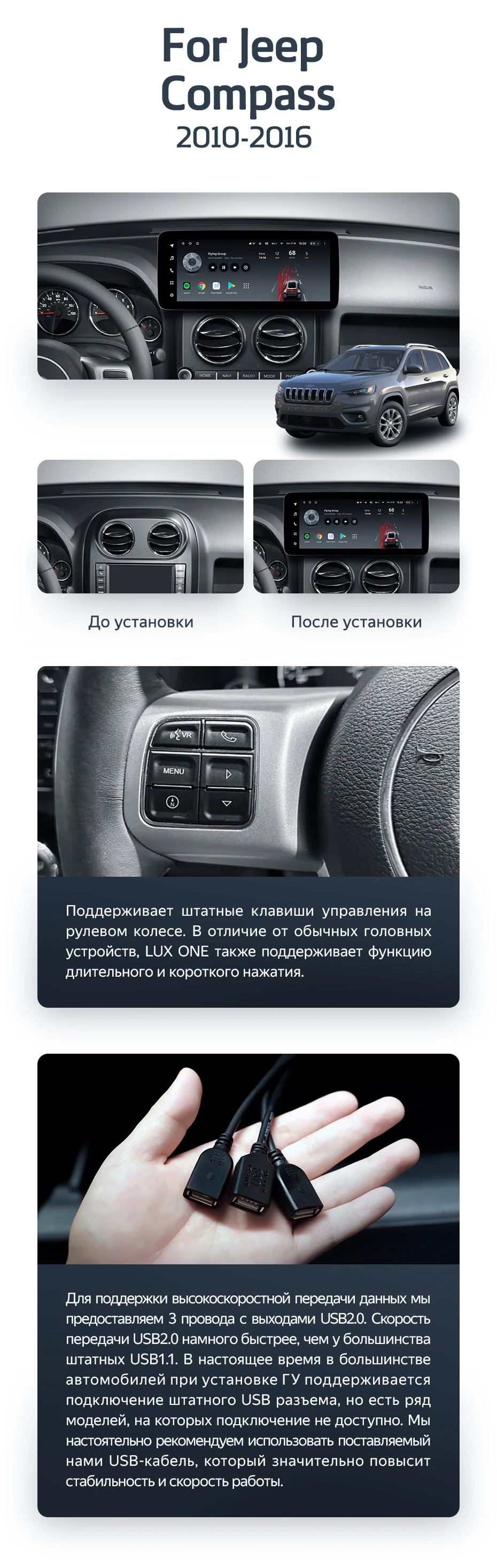 Штатная магнитола Teyes LUX ONE 360 6/128 Jeep Compass MK (2010-2016) - купить всего за 61 400 руб. в интернет-магазине в Подольске Teyes.com.ru. ✓ Самый лучший выбор мультимедиа ✓ Лучшая замена штатному ГУ ✓ Тел. +7 (800) 775-31-74