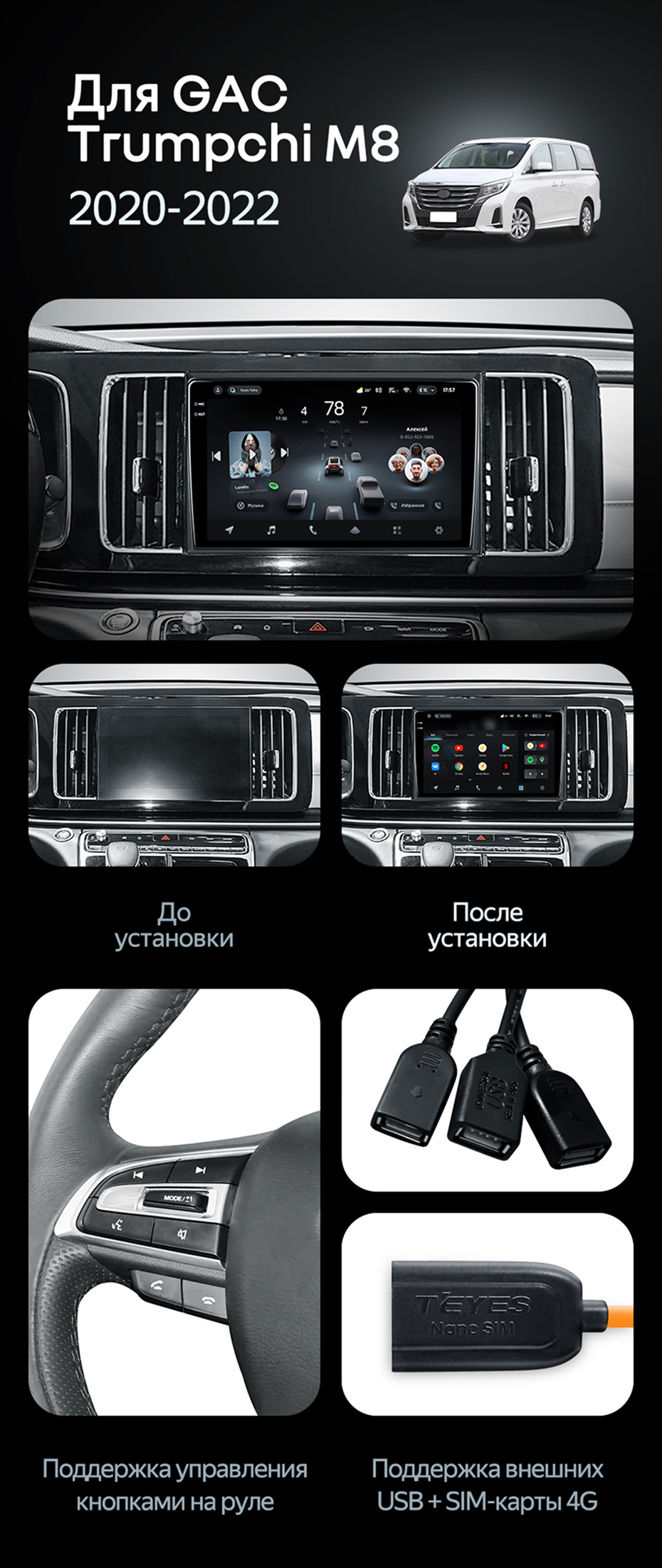 Переходная рамка GAC Trumpchi M8 (2020-2022) (10") - купить всего за 5 400 руб. в интернет-магазине в Подольске Teyes.com.ru. ✓ Самый лучший выбор мультимедиа ✓ Лучшая замена штатному ГУ ✓ Тел. +7 (800) 775-31-74
