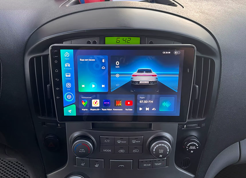 Полный комплект установки магнитолы Teyes с рамкой и проводкой можно выбрать в каталоге штатных магнитол Hyundai H1 TQ (2007-2015).